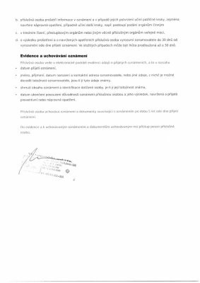 Současně s tím určuje zaměstnavatel tzv. příslušnou osobu, která je odpovědná za příjem, posuzování a prošetřování přijatých oznámení a za komunikaci s oznamovatelem.